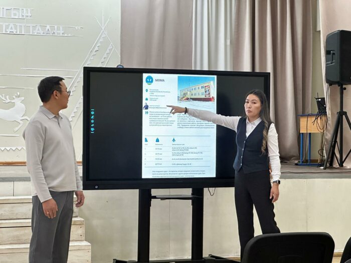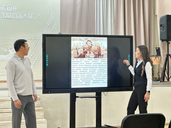 В рамках празднования 100-летнего юбилея Авиации Якутии филиал «Аэропорт Мома» организовал серию профориентационных встреч для подрастающего поколения. 22 октября 2025 года представители аэропорта провели открытые уроки для учащихся 6 «б», 9 «а» и 9 «б» классов МБОУ «Момская СОШ». Целью мероприятий было знакомство школьников с богатой историей и современным развитием авиации в республике.Перед учениками выступили ветераны и действующие сотрудники предприятия: * Ветеран авиации, начальник САБ — Минаев Иннокентий Васильевич; * Авиатехник по НО ВС — Павлов Данил Львович; * Фельдшер МСЧ — Тогмитова Саргылана Даниловна.