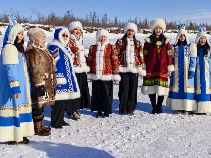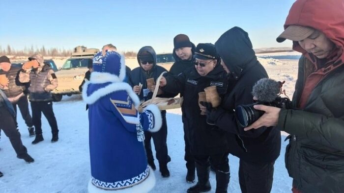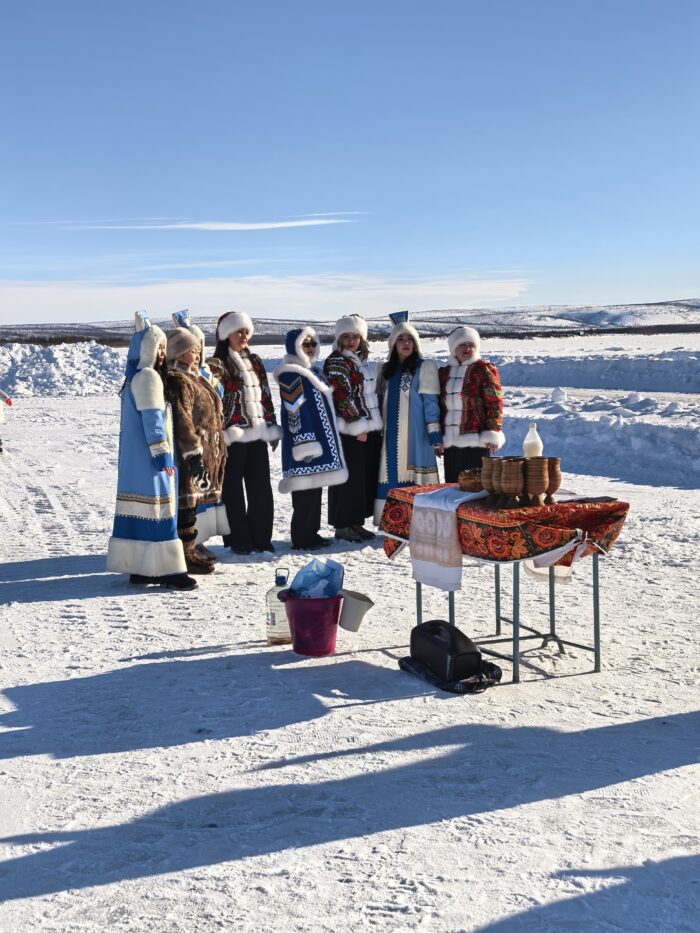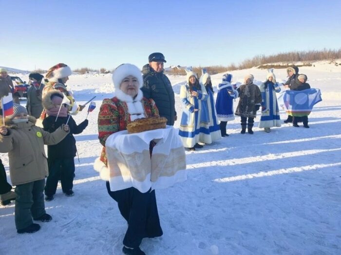 Для путешественников, преодолевших тысячи километров бездорожья, был организован традиционный обряд: хлеб-соль, ароматные оладьи с кумысом и, конечно, строганина из свежей рыбы. Завершил встречу на свежем воздухе осуохай — хоровод единения, символизирующий дружбу народов.